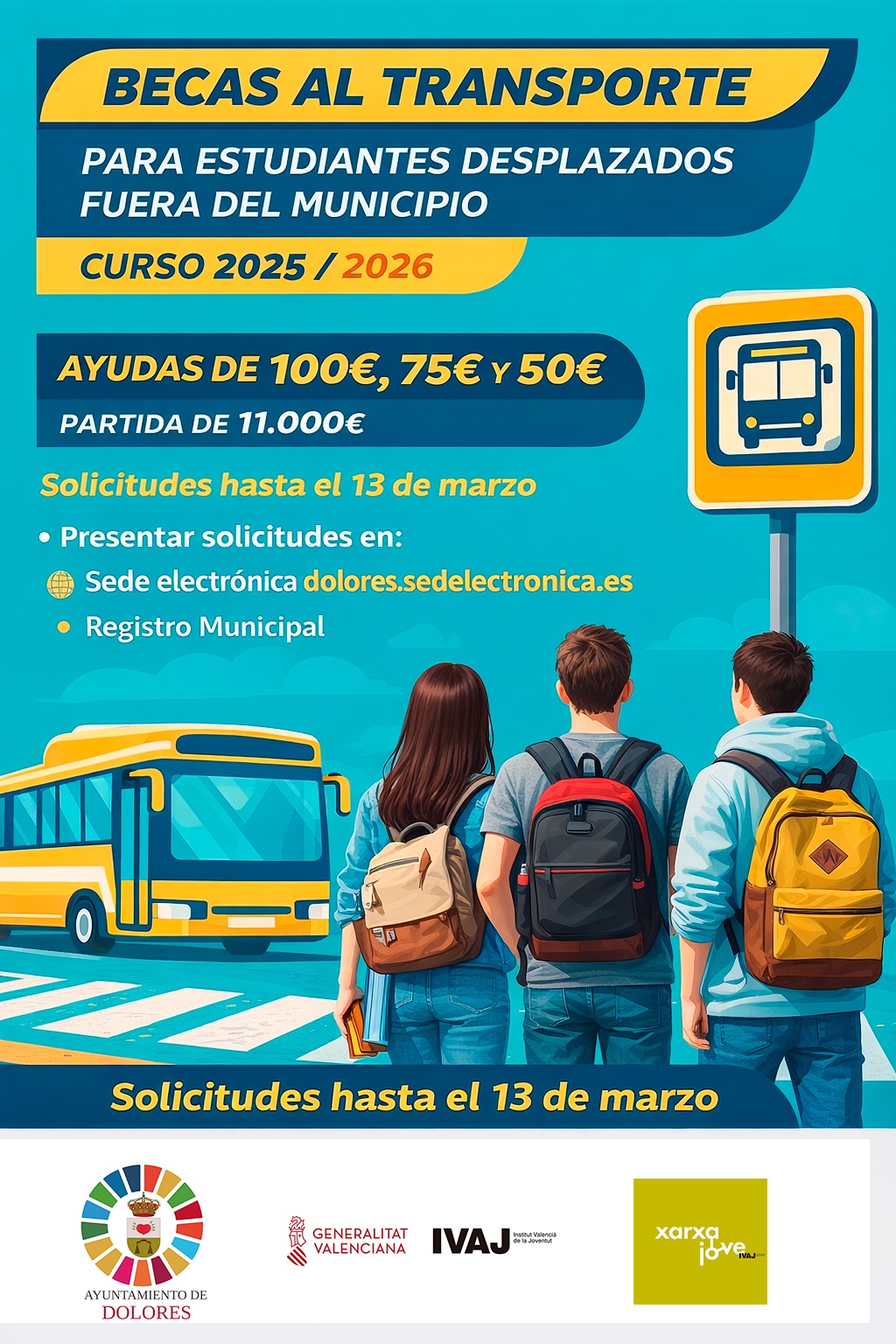El Ayuntamiento de Dolores ha publicado las Bases que han de regir para la convocatoria de Ayudas al Transporte para estudiantes desplazados fuera del término municipal durante el curso a 2025-2026.