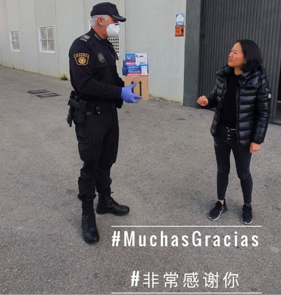 Empresarios chinos de Crevillent han donado mascarillas, guantes y geles a la policía local de Dolores.